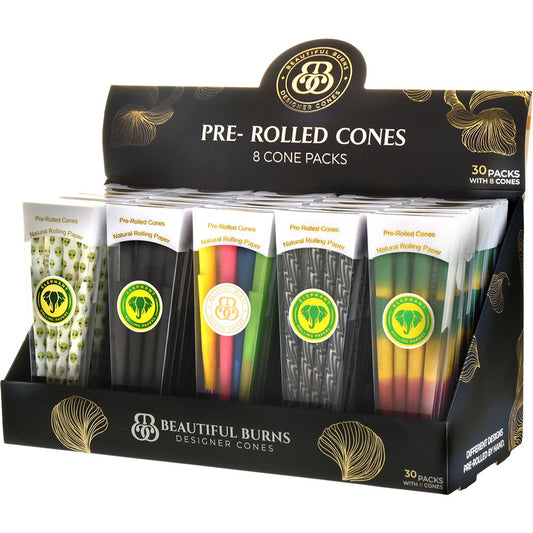 Beautiful Burns Designer Pre-Rolled Cones | Assorted Designs | 8pc | 30pk Display