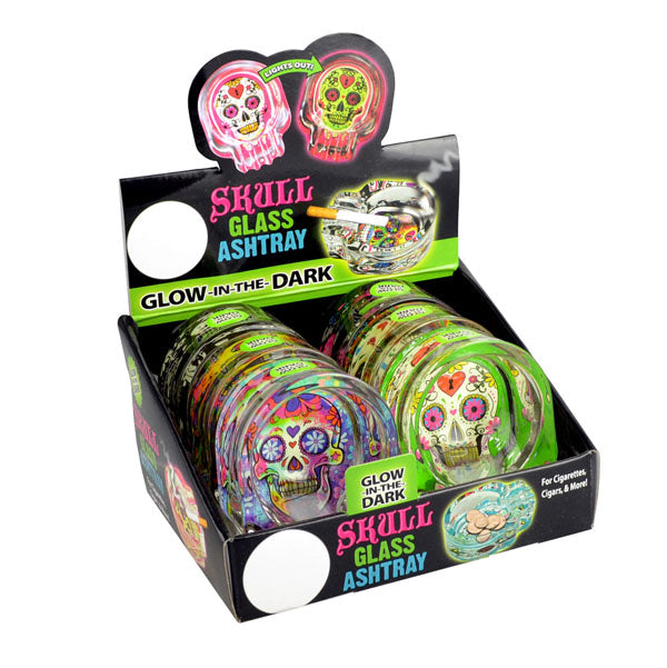 Glow Sugar Skull Glass Ashtray | 2.75"x3.75" | 6pc Display