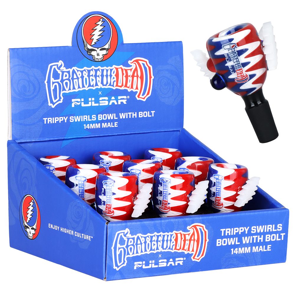 9CT DISPLAY - Grateful Dead x Pulsar Bolt Trippy Swirls Herb Slide - 14mm M