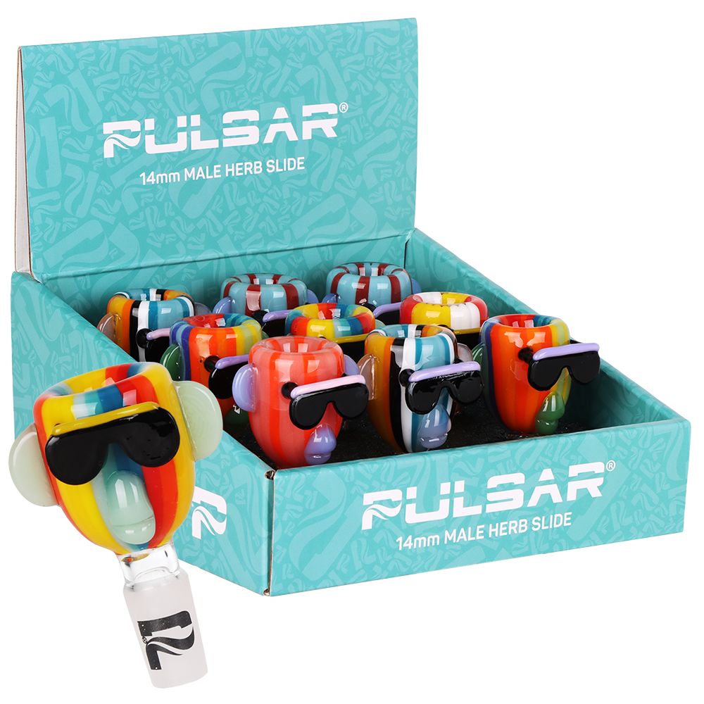 9CT DISPLAY - Pulsar Chill Rainbow Monkey Glass Herb Slide - 14mm M / Assorted Colors
