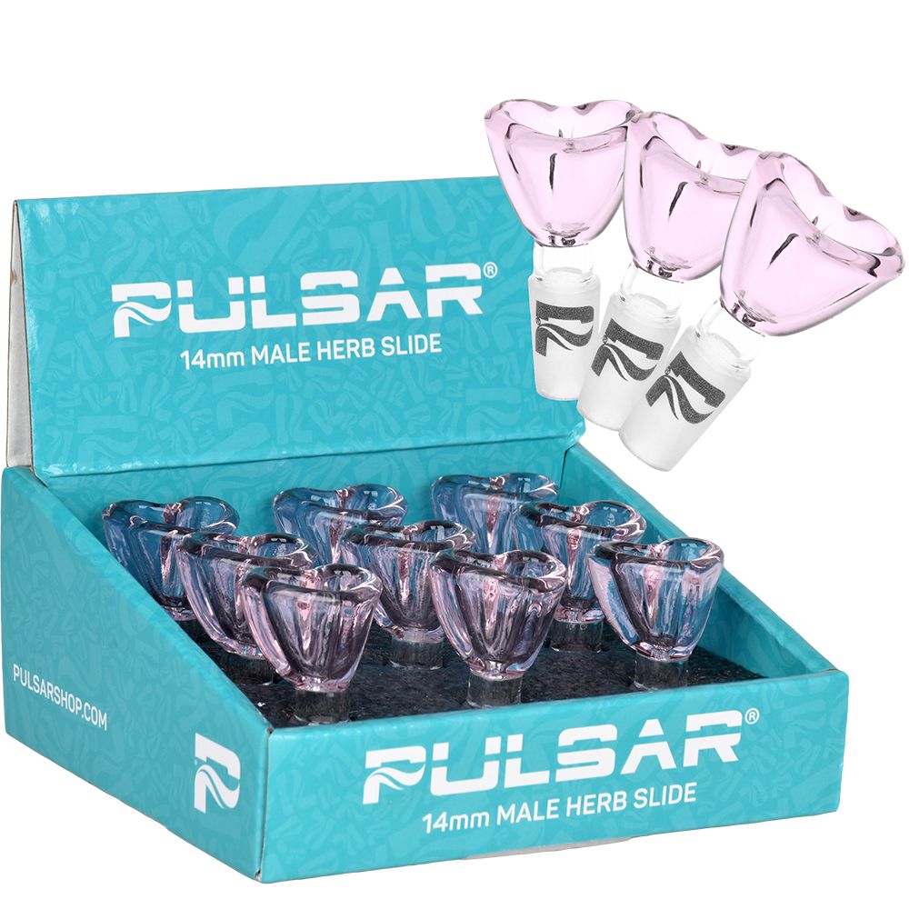 9CT DISPLAY - Pulsar Heart-Shaped Bowl Herb Slide - 14mm M / Pink